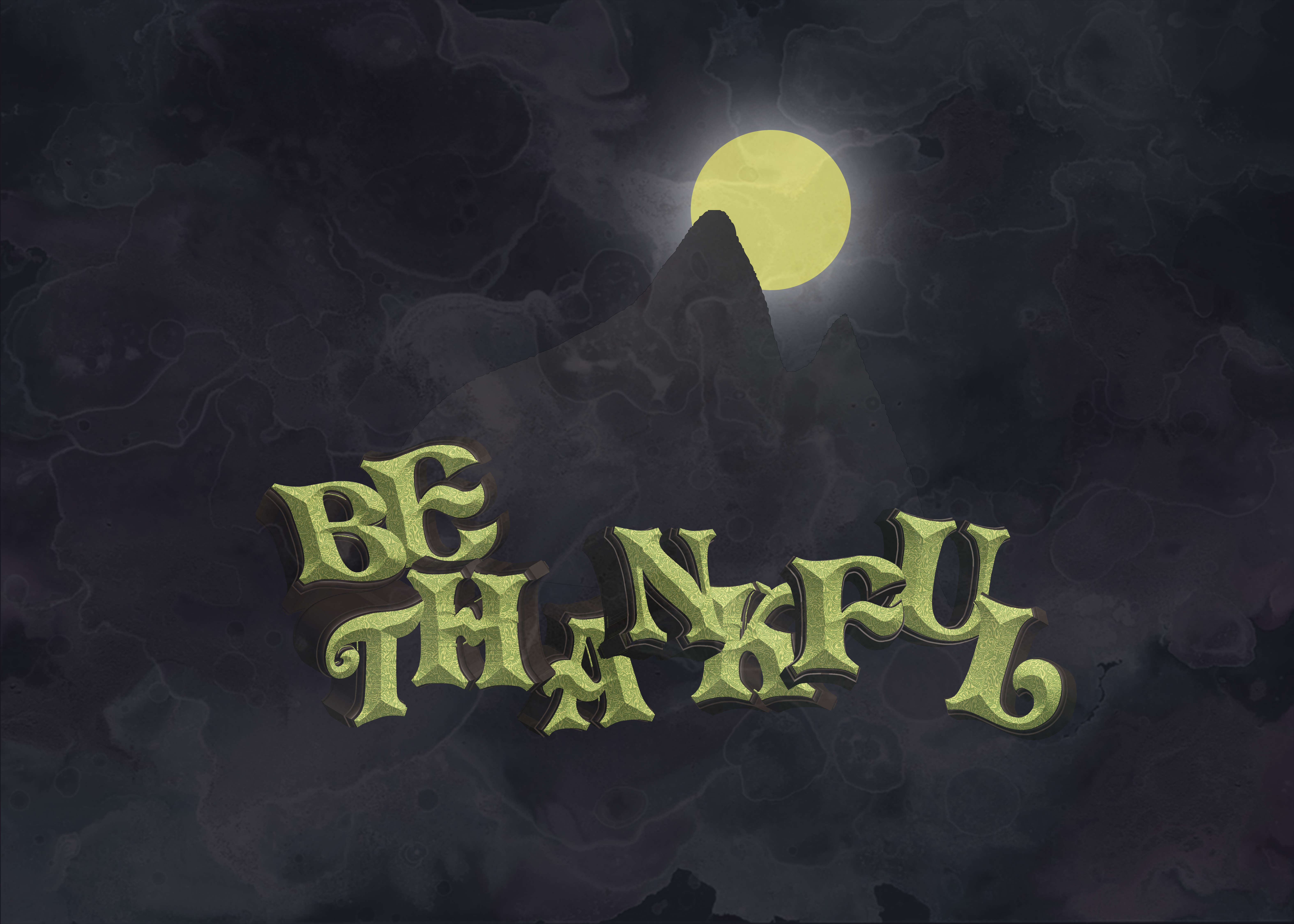 This image is a take on the phrase Be Thankful where I made the text in 3D at different rotations.
