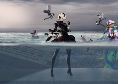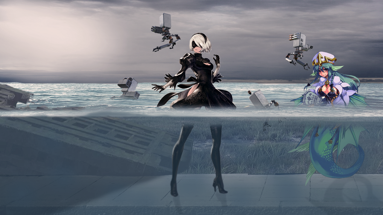 In this image masks were used to allow for the appearance of objects submerged in the water.