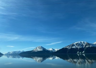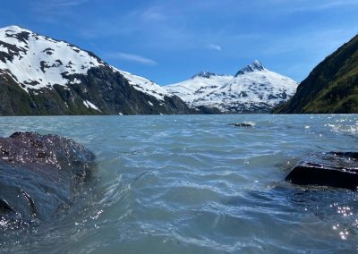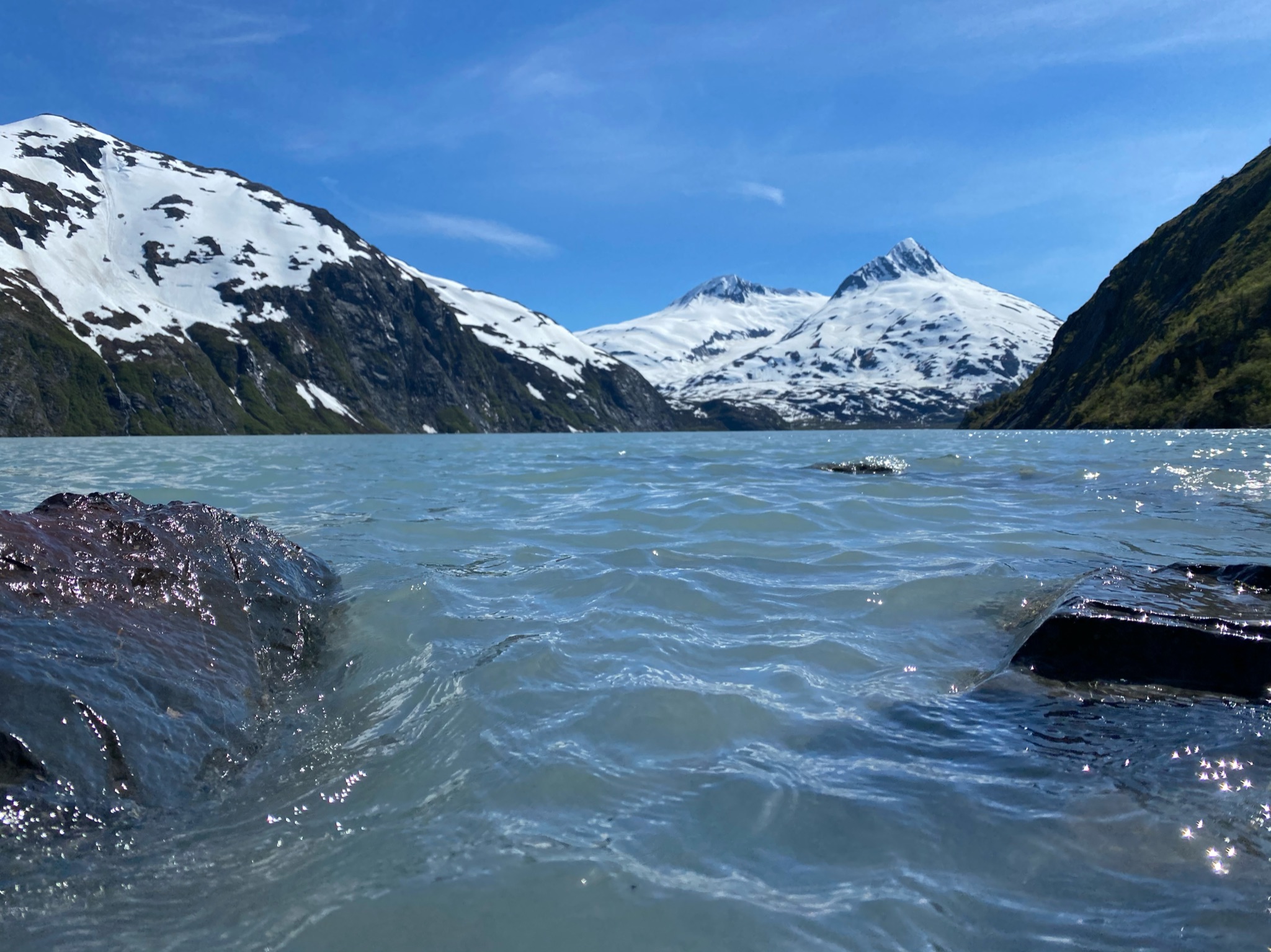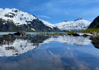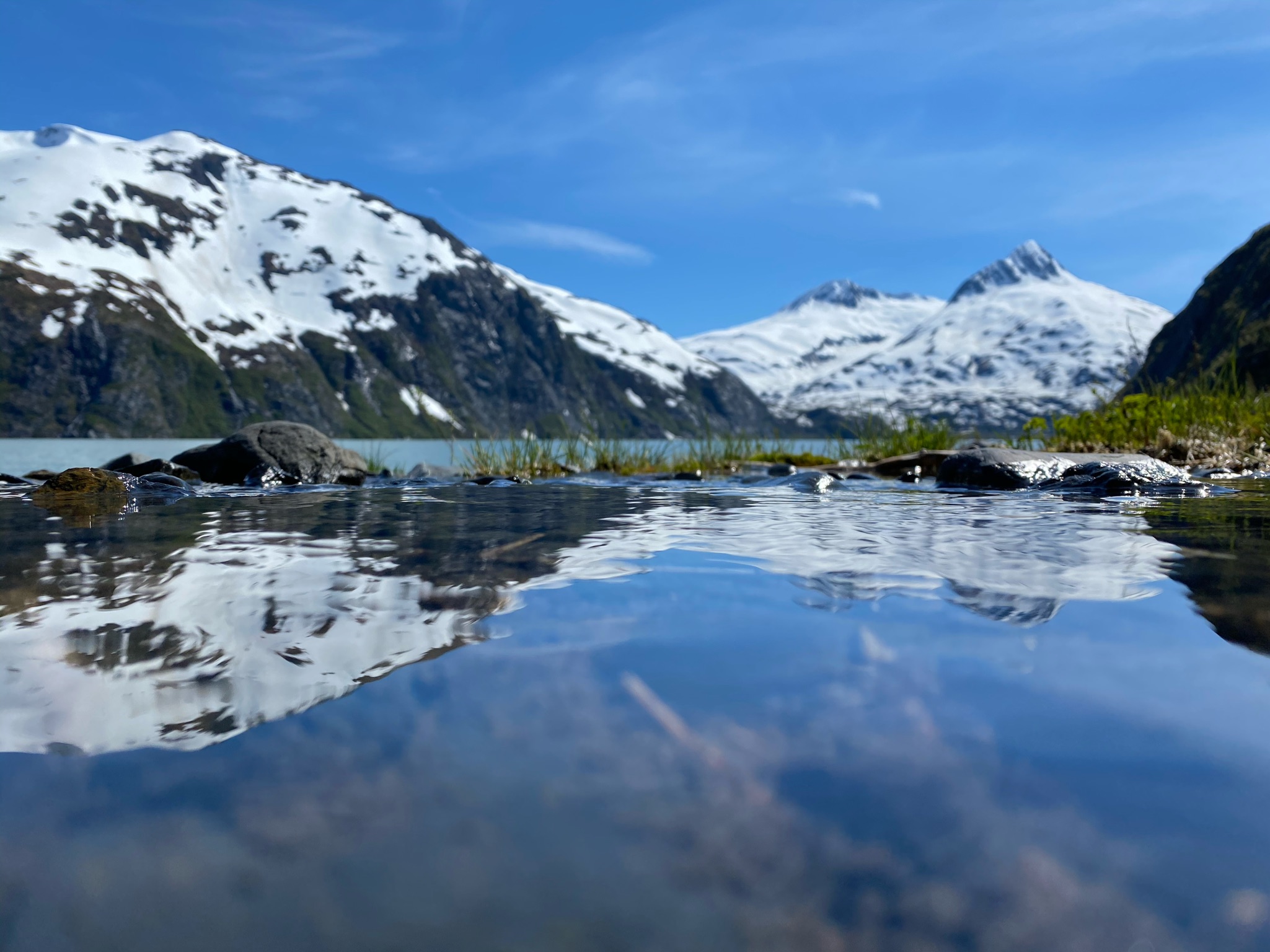 This photo was taken on my phone utilizing the reflection of the water to capture the mountains beside this Alaskan Glacier pool.